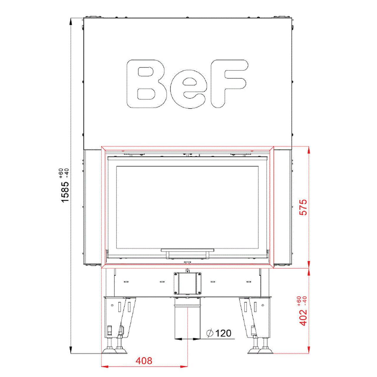 BeF Therm V 8: Hochschiebbarer Kamineinsatz mit großer Sichtscheibe