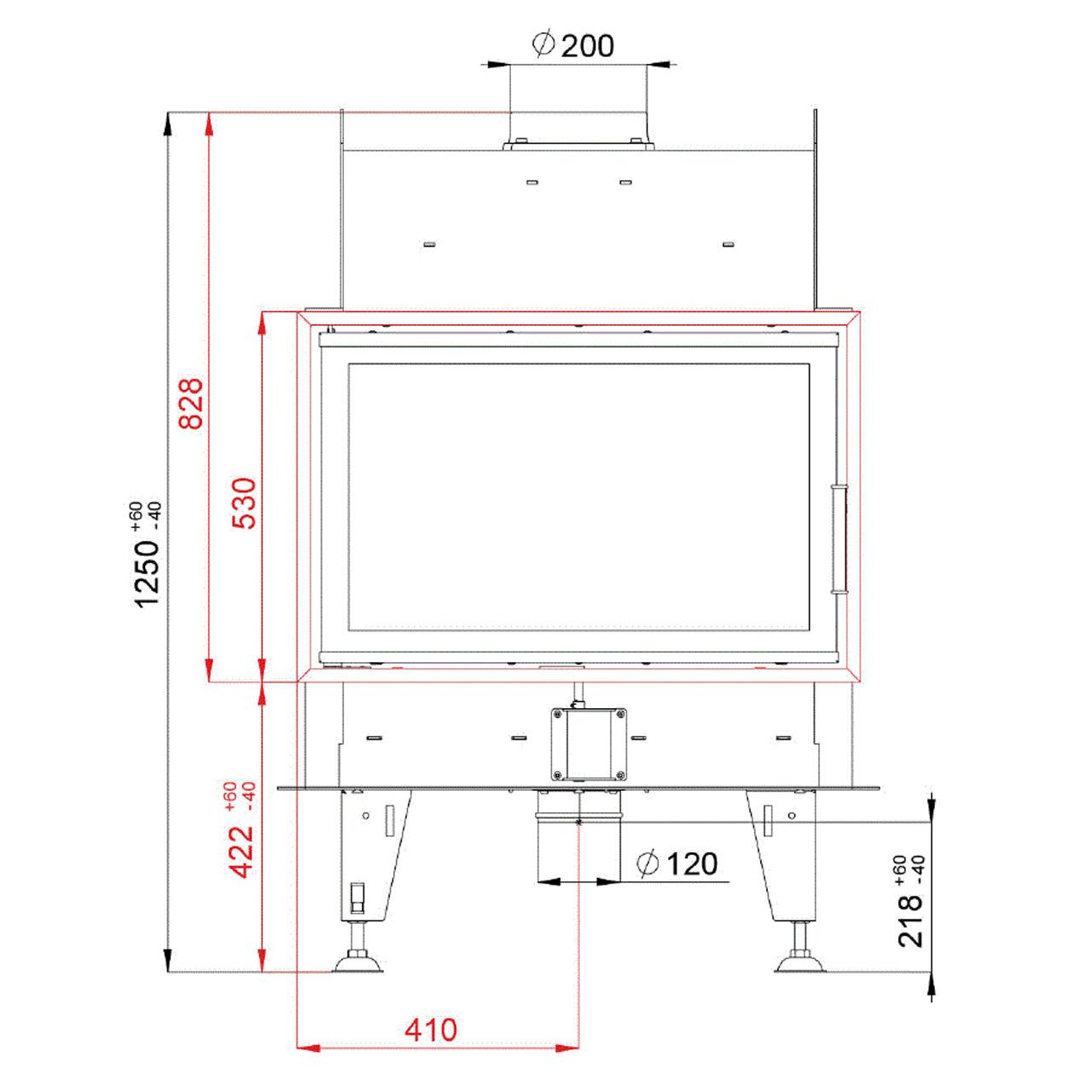 Kamineinsatz BeF Twin 8 II Durchsicht – moderner Tunneleinsatz in flacher Konstruktion