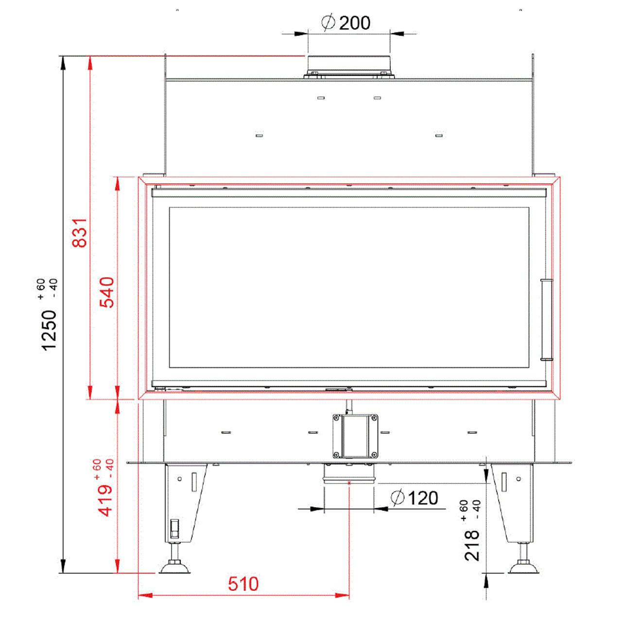 - Rauchrohranschluss nach oben