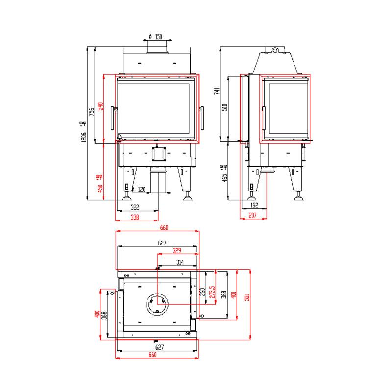- Kamineinsatz Durchsicht mit Eck-Verglasung links