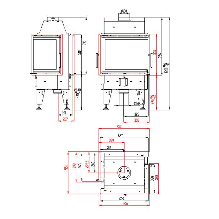 - Kamineinsatz Durchsicht mit Eck-Verglasung rechts