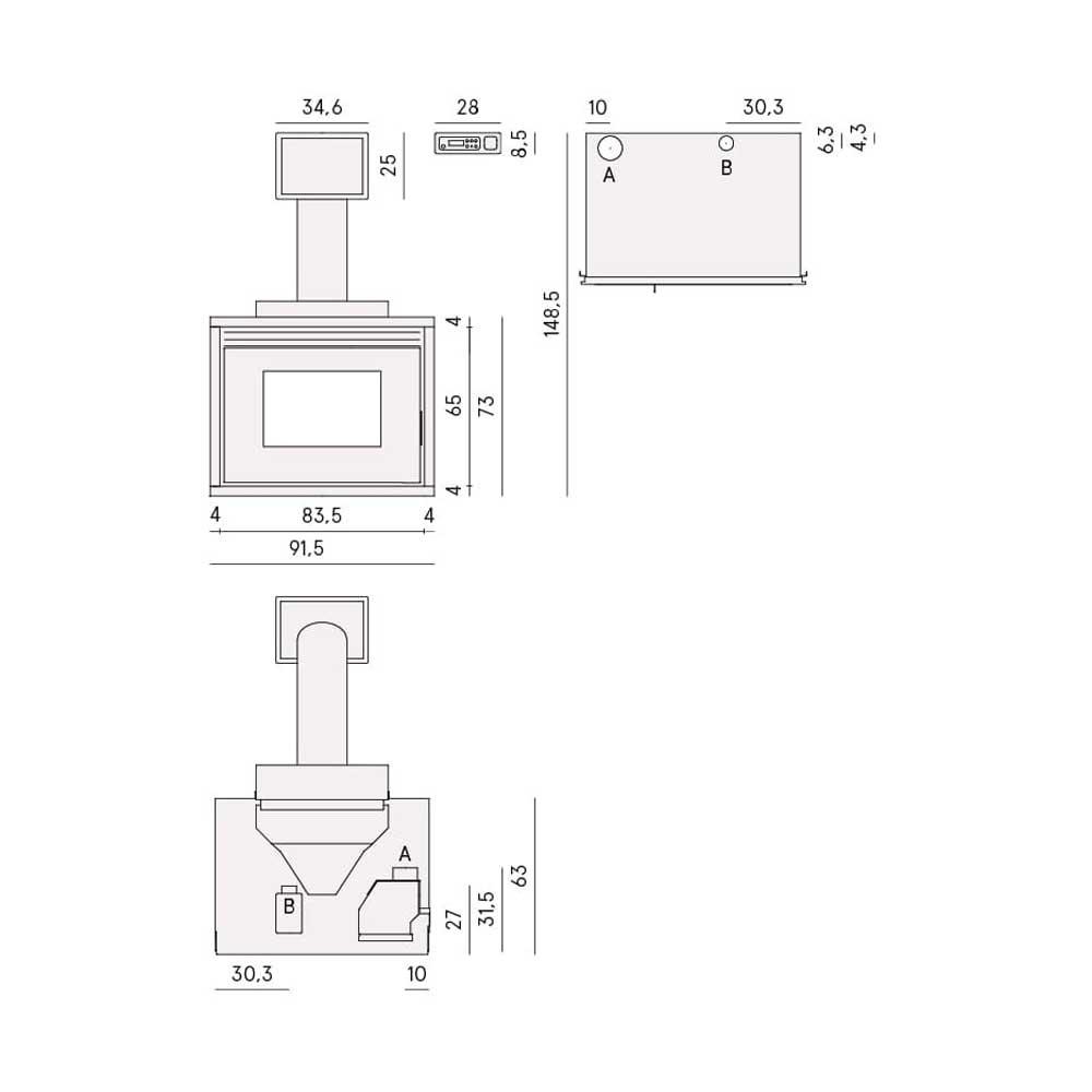 Der Cadel Saturno 16 ist ein wasserführender Pelletofen mit minimalistischem Design. Er ist mit einem Hydraulik-Bausatz, einer frontalen Ventilation und einer ausrichtbaren Pelletklappe ausgestattet.