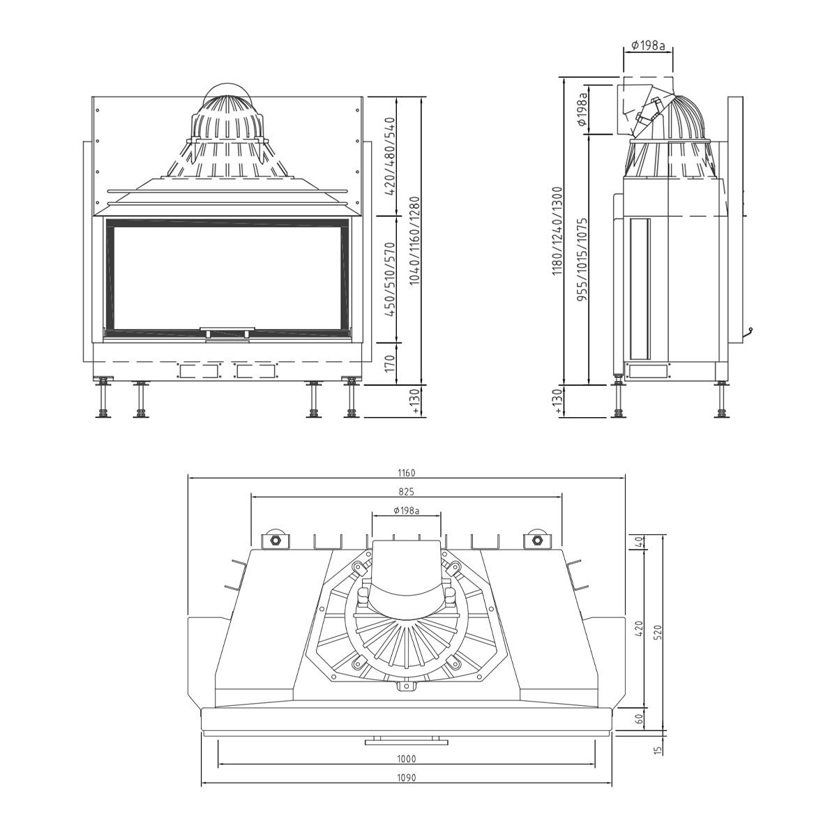 - Gusskuppel sorgt für einen flexiblen Rauchrohranschluss (Ø 200 mm)