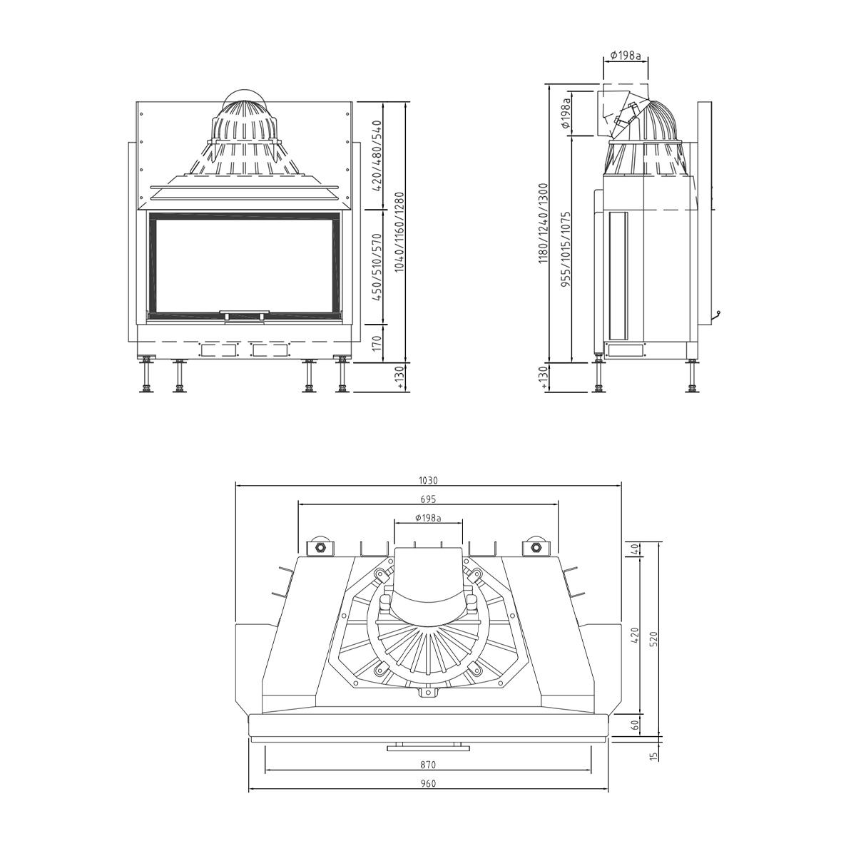 - Gusskuppel sorgt für einen flexiblen Rauchrohranschluss (Ø 200 mm)
