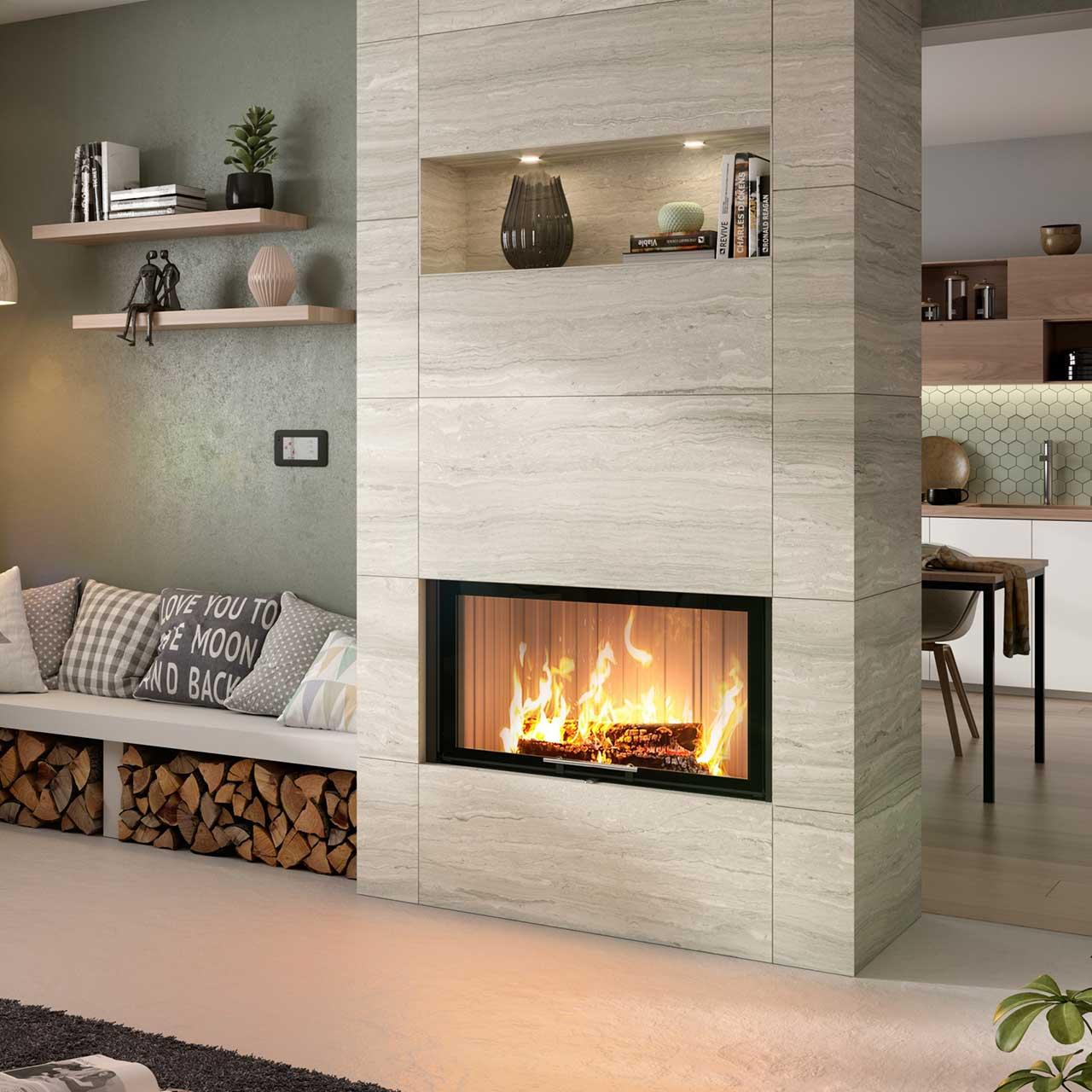 Mit den Wärmespeicherprodukten Helix 460 sowie der Thermobox schmal oder breit können Sie noch mehr aus Ihrem Varia 1V-87h Kamin herausholen. Beide Aufsätze sind dafür entwickelt, die Hitze des Feuers einzuspeichern und nach und nach an den Raum zurückzugeben.