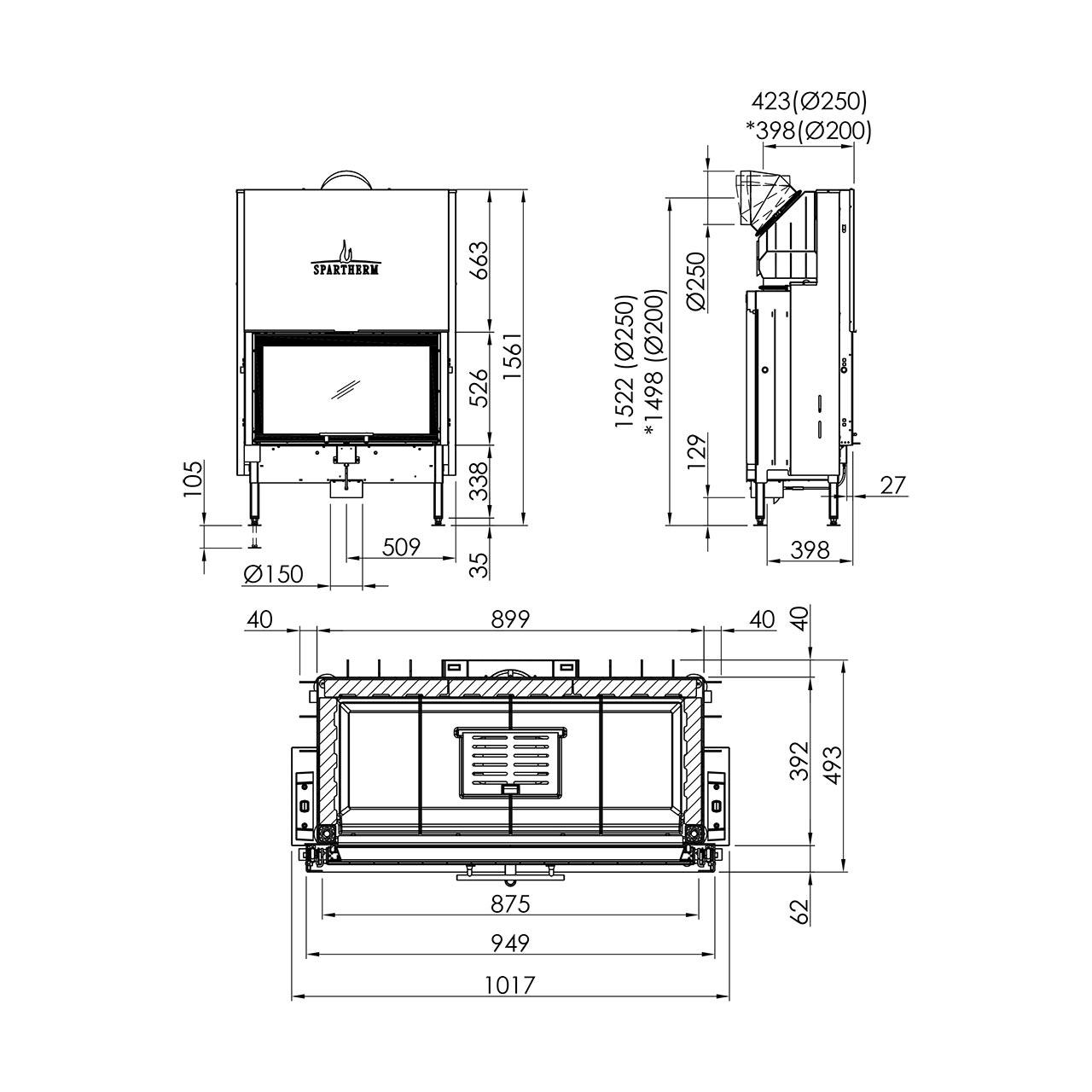 - Rauchrohranschluss: 250 mm / 200 mm