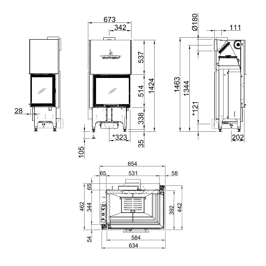 Feuer mit der Ecke: Kamineinsatz Varia 2R-55h RLU von Spartherm