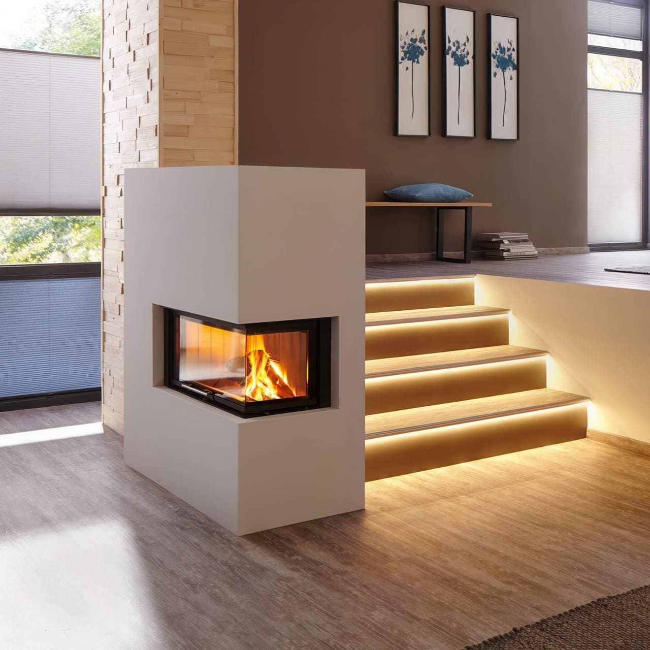 - Kamineinsatz mit Eckverglasung rechts