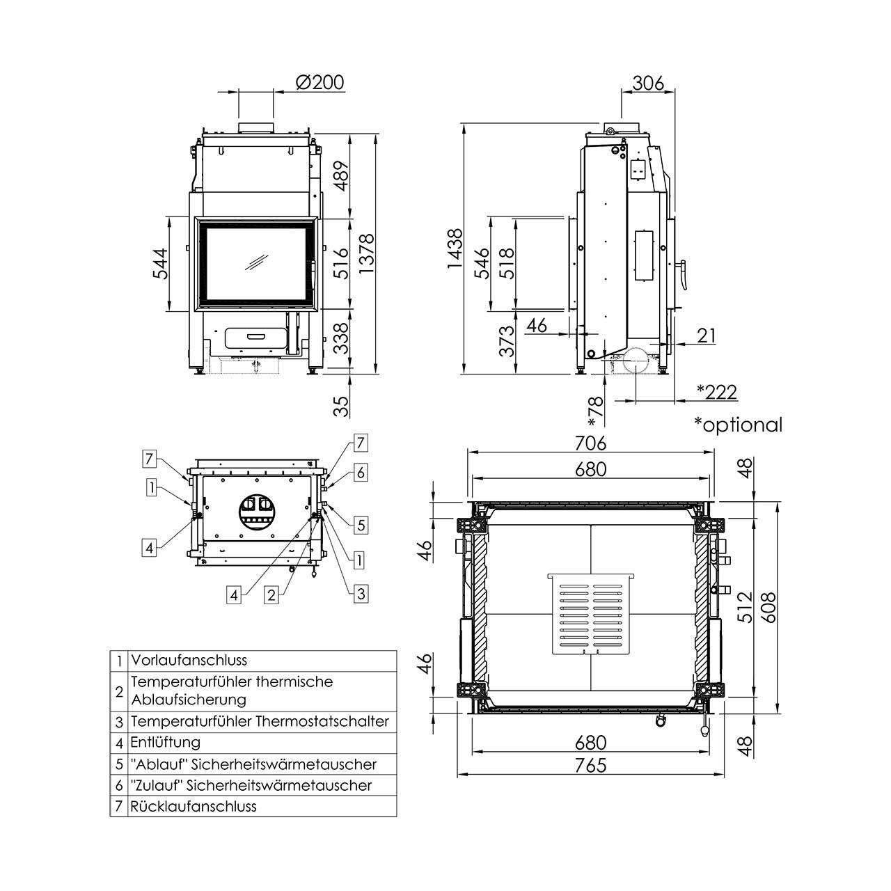 - Rauchrohr: 200 mm