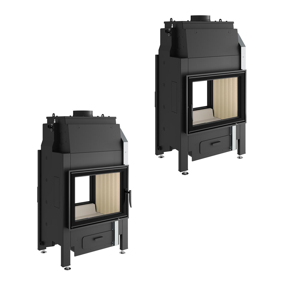 - wasserführender Kamineinsatz mit schwenkbarer Feuerraumtür