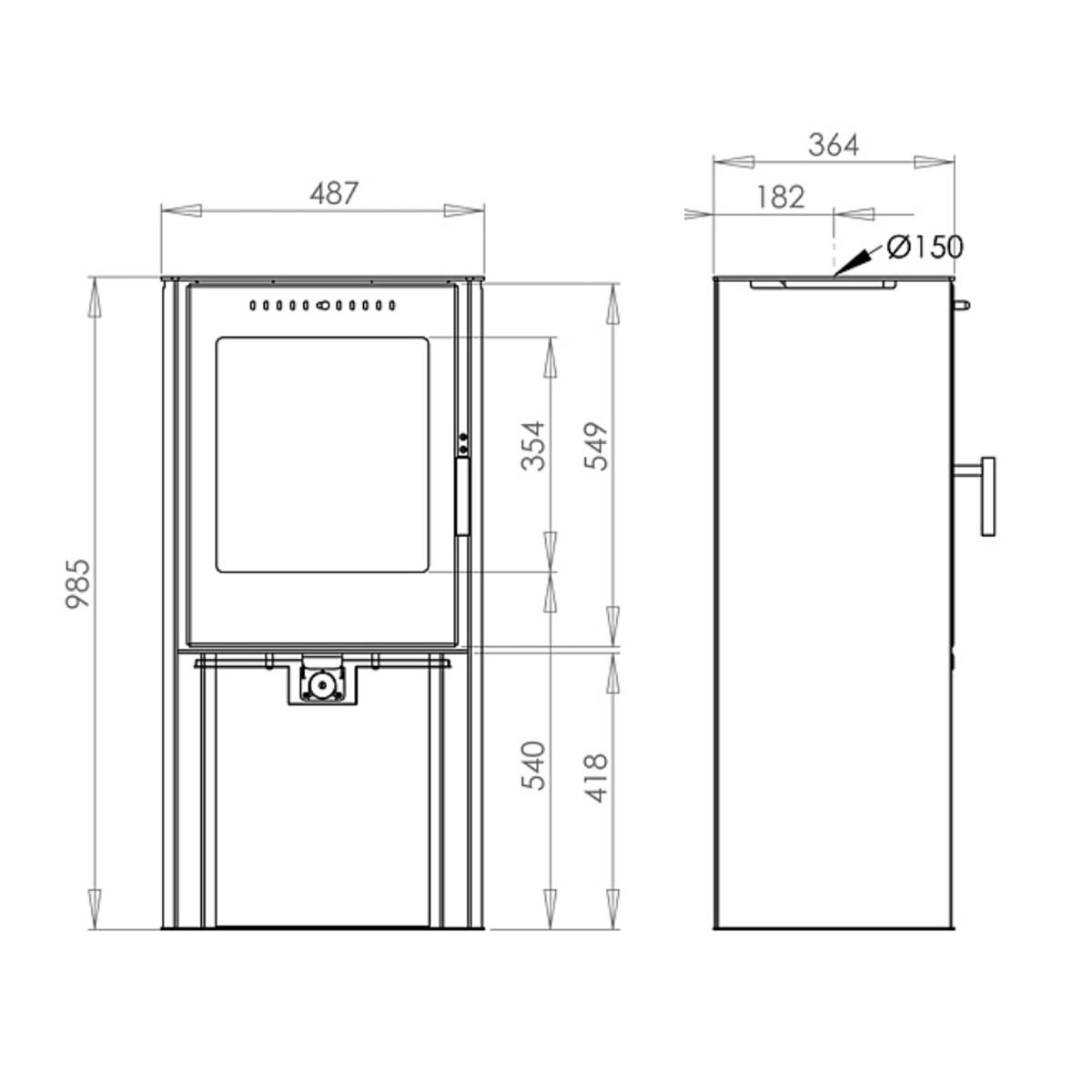 | Mindestabstände zu brennbaren Bauteilen | hinten 10 cm seitlich 30 cm vorne 85 cm |