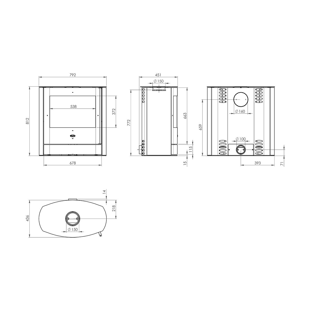 | Maße Kaminofen HxBxT | 812x792x436 mm | |