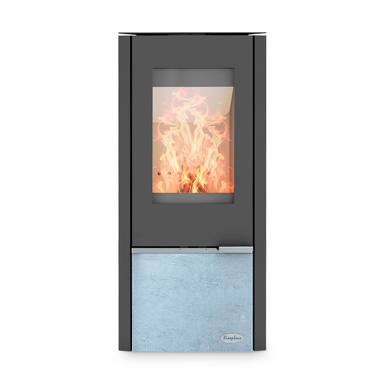 Über den Natursteineinsatz erstreckt sich die großzügige Feuerraumtür, welche mit einem automatischen Türverschluss und einer Mehrfachverriegelung gesichert ist. Die geräumige Brennkammer bietet Platz für 33 cm lange Holzscheite und ist mit Vermiculiteplatten wärmegedämmt. Auf diese Weise heizen Sie sicher und effektiv.Merkmale: