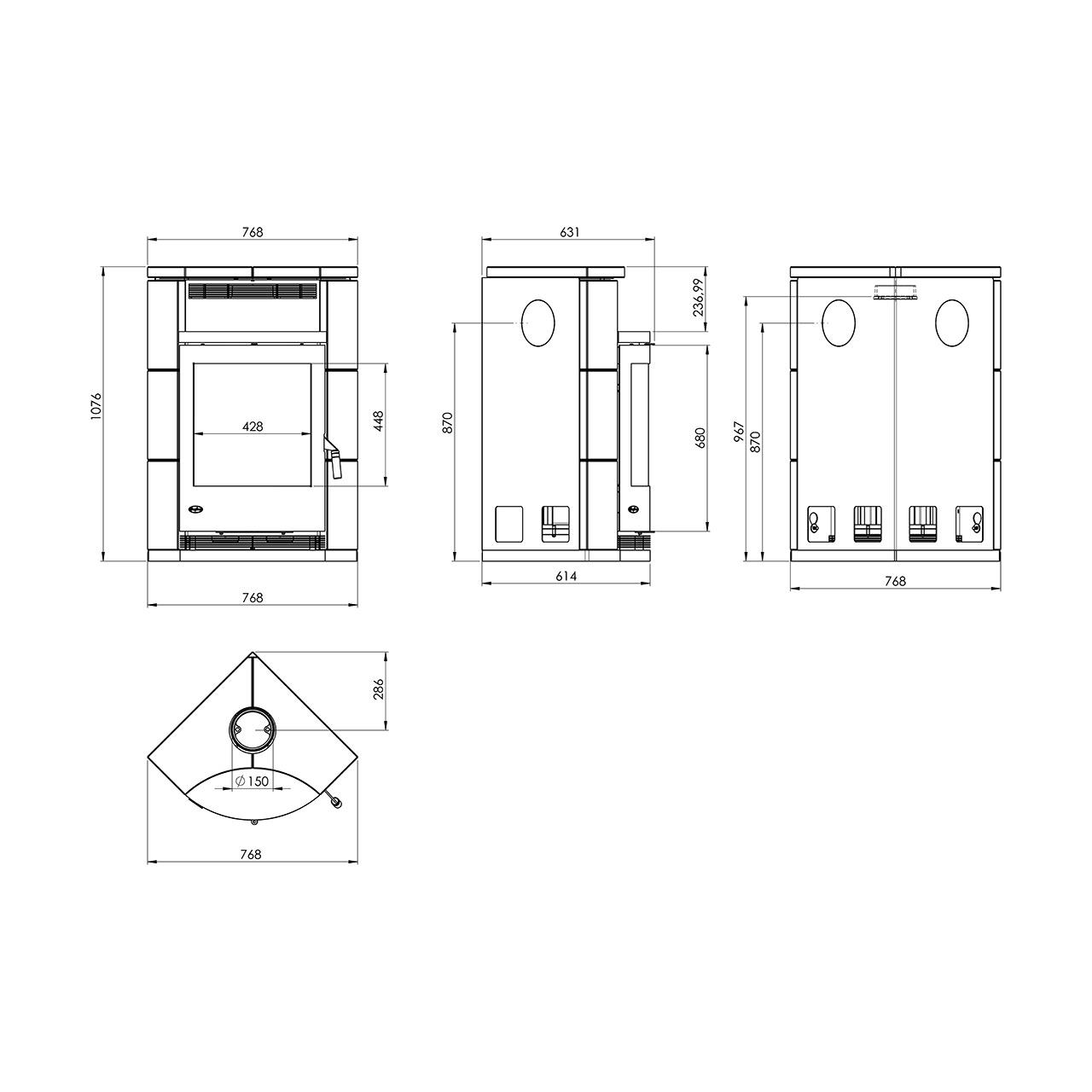 | Maße Kaminofen HxBxT | 1076x768x615 mm | |