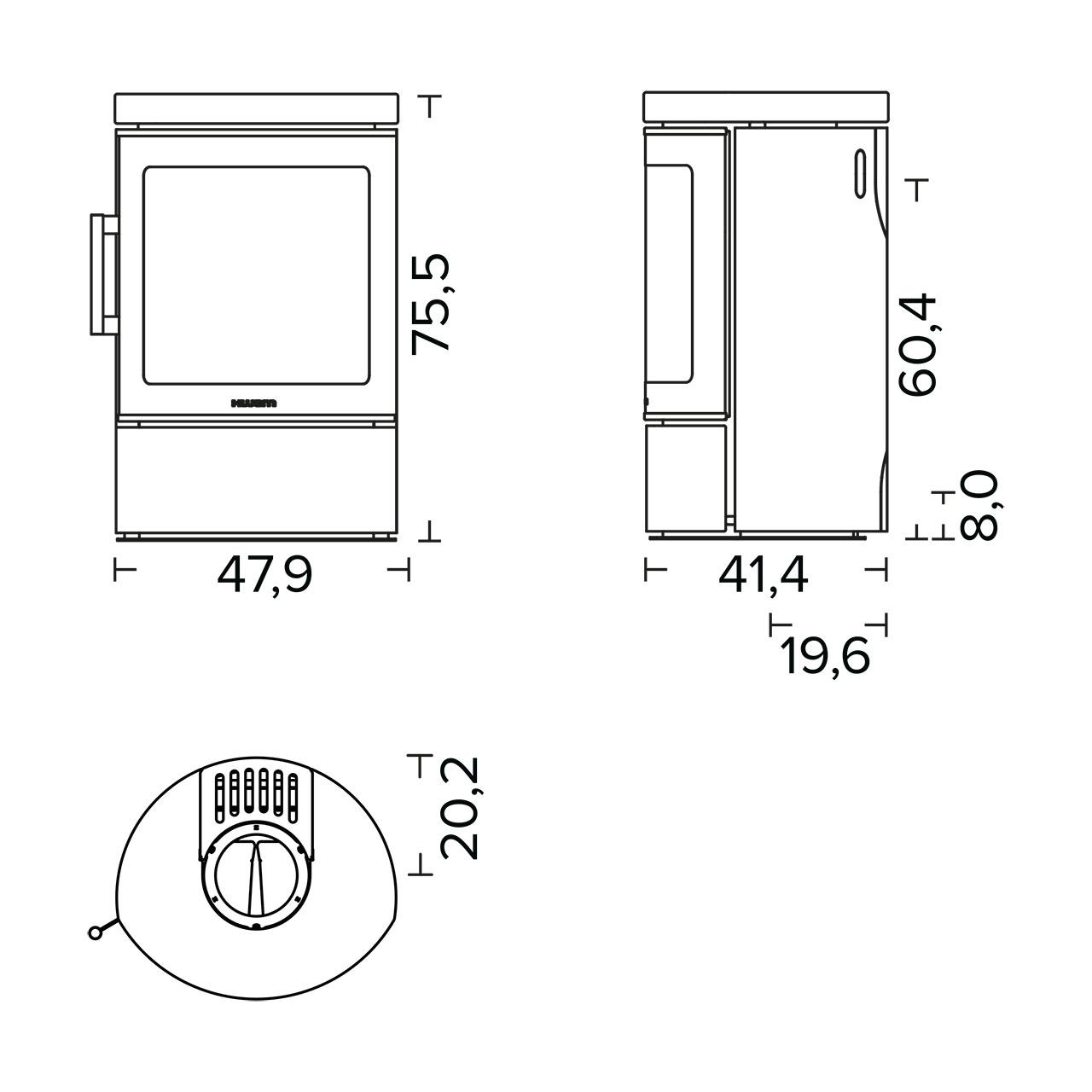 - Maße mit niedrigem Sockel: H75,5 / B47,9 / 41,5