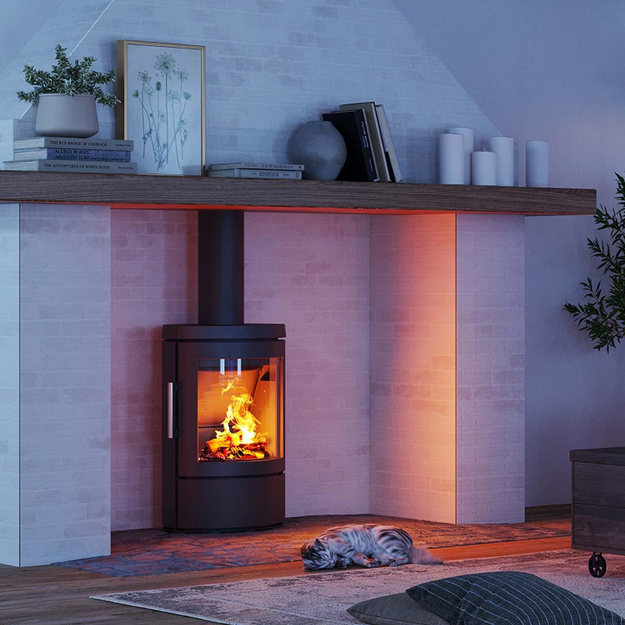 Der HWAM Kaminofen 3110 Automatic ist mit einem automatischen Verbrennungsluftsystem ausgestattet. Das verbessert die Leistung und Effizienz des Kaminofens. Die Brennluft wird automatisch reguliert und an den Status des Abbrands angepasst. Das verbessert den Abbrand und führt zu einer nachhaltigen und brennstoffsparenden Verbrennung des Scheitholzes. Der HWAM Kaminofen 3110 Automatic heizt außerdem den Raum wohltuend auf: Bei dem Ofen handelt es sich um einen Konvektionsofen, der die Wärme gleichmäßig im Raum verteilt. Dabei wird die Raumluft schnell und konstant erwärmt.