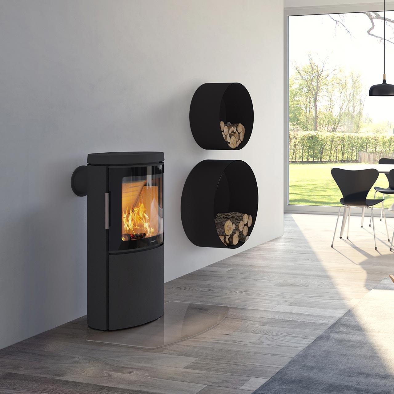 Der HWAM 3120 Automatic eignet sich dank seiner Nennwärmeleistung von 4,5 kW auch für kleine Räume. Auch die kompakten Maße machen den Ofen ideal für ein kleineres Zimmer. Der Kaminofen heizt effizient und nachhaltig auch dank seiner Kombination von Primär- und Sekundärbrennluft. Dabei wird das Holz nachverbrannt, weshalb noch mehr Energie und Wärme gewonnen werden kann. Die Brennkammer des HWAM 3120 Automatic ist mit Vermiculite ausgekleidet. Die extrem hitzebeständige Vermiculite schützt den Kaminofen vor den sehr hohen Temperaturen in der Brennkammer und sorgt so mit dafür, dass der Ofen ein langlebiger Begleiter wird. Mit dem HWAM 3120 Automatic bekommen Sie einen leistungsfähigen Kaminofen mit automatischem Brennluftsystem, der optisch mit seiner Ellipsenform besonders elegant daherkommt.