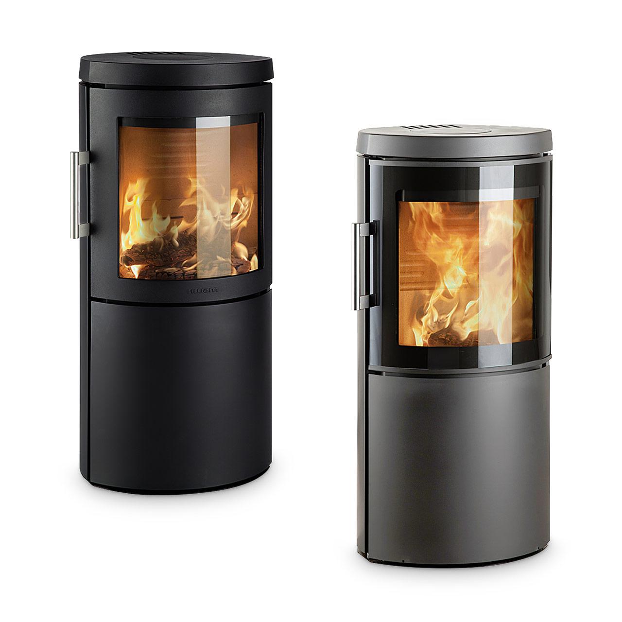 - Kaminofen mit elliptischer Form, lässt sich im Raum frei aufstellen