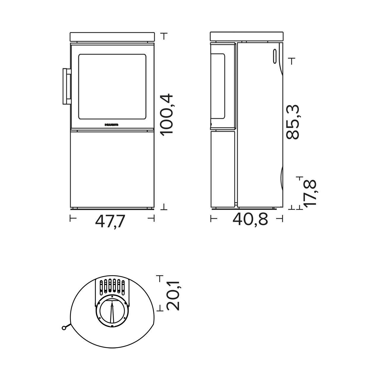 - Verbrennungsluftsystem, Ø100 mm, Anschluss hinten/unten: Mit dem Frischluftsystem von HWAM kann der Kaminofen einen eigenen Luftkreislauf erzeugen und so unabhängig von der Raumluft arbeiten. Der Stutzen kann wahlweise nach hinten oder nach unten montiert werden.