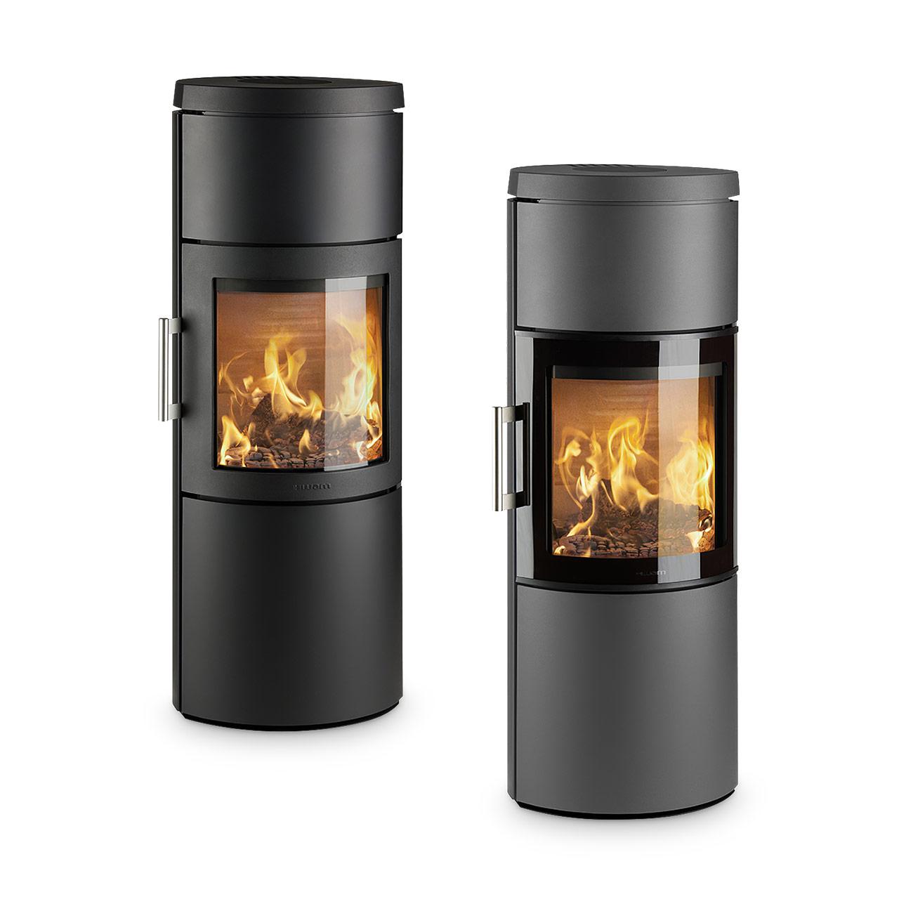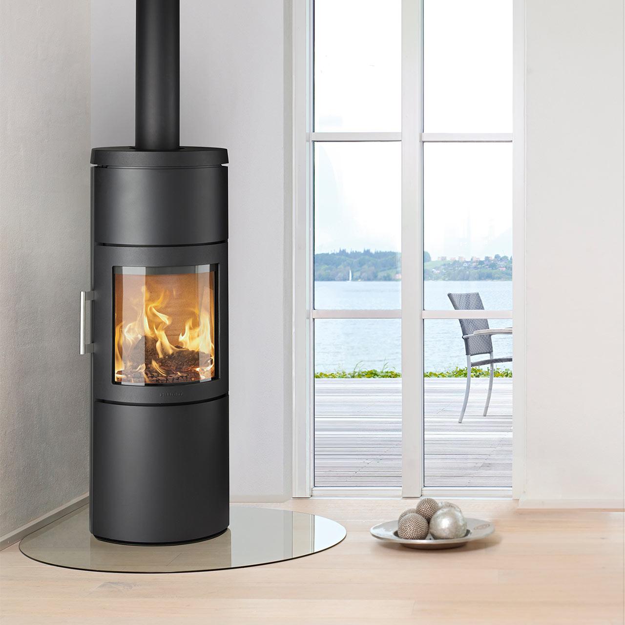 - schlanker, hoher Kaminofen, lässt sich im Raum frei aufstellen