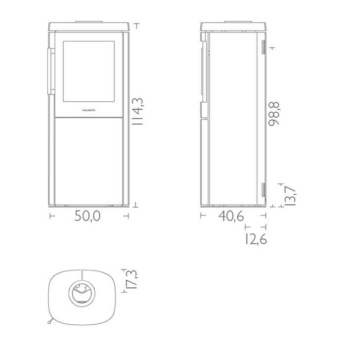 - HWAM Verbrennungsluftsystem, Anschluss Ø 100 mm (Bei der Ausführung RLU bereits enthalten): Mit dem Frischluftsystem von HWAM kann der Kaminofen einen eigenen Luftkreislauf erzeugen und so unabhängig von der Raumluft arbeiten. Der Stutzen kann wahlweise nach hinten oder nach unten montiert werden.
