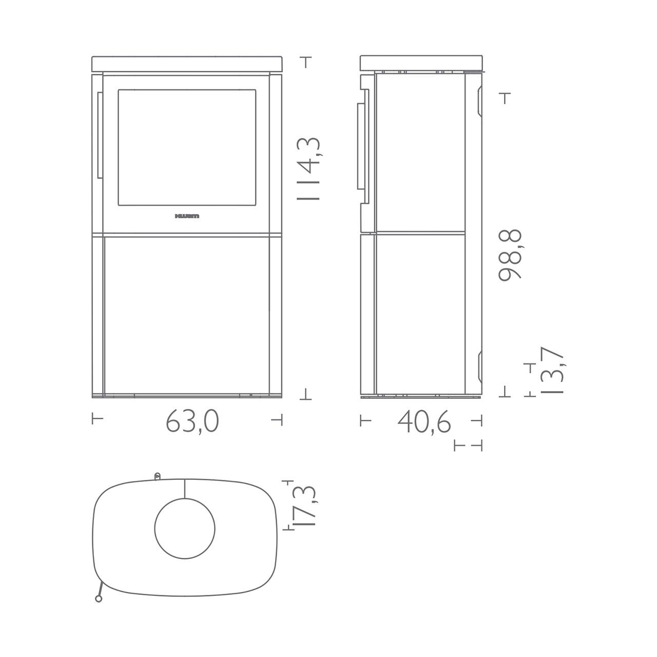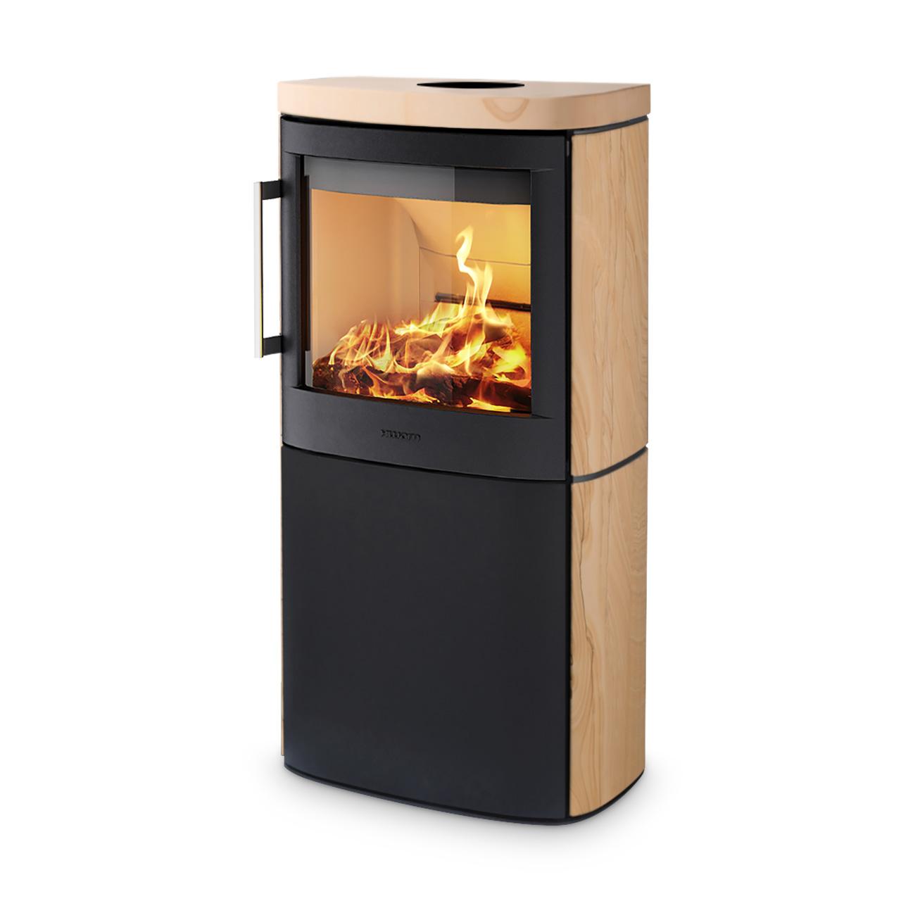 Der Korpus wurde bei dem Kaminofen 4640c aus schwarzem Stahl hergestellt. Neben der Ausführung in Stahl können Sie zwischen drei weiteren Natursteinverkleidungen wählen. Entweder Sie bleiben bei der klassischen Stahl-Optik oder Sie verkleiden diesen Kaminofen mit Speckstein oder Sandstein Tobacco. Eine Verkleidung aus Naturstein sieht bei dem Kaminofen 4640c von HWAM nicht nur gut aus und macht ihn zu einem Unikat, sondern dient auch als natürlicher Wärmespeicher.