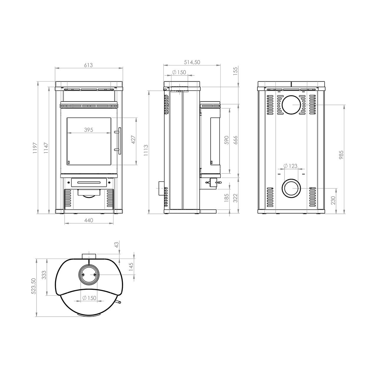 | Durchmesser Abgasstutzen | 150 mm |