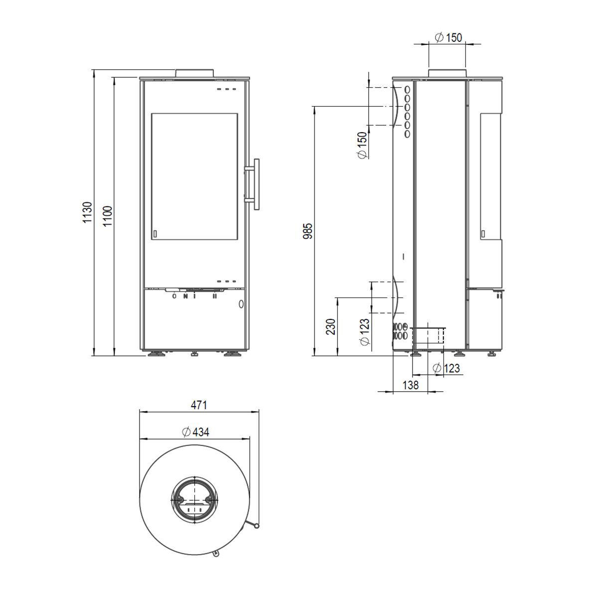 - Stutzen für externe Verbrennungsluftzufuhr (Ø 125 mm)
