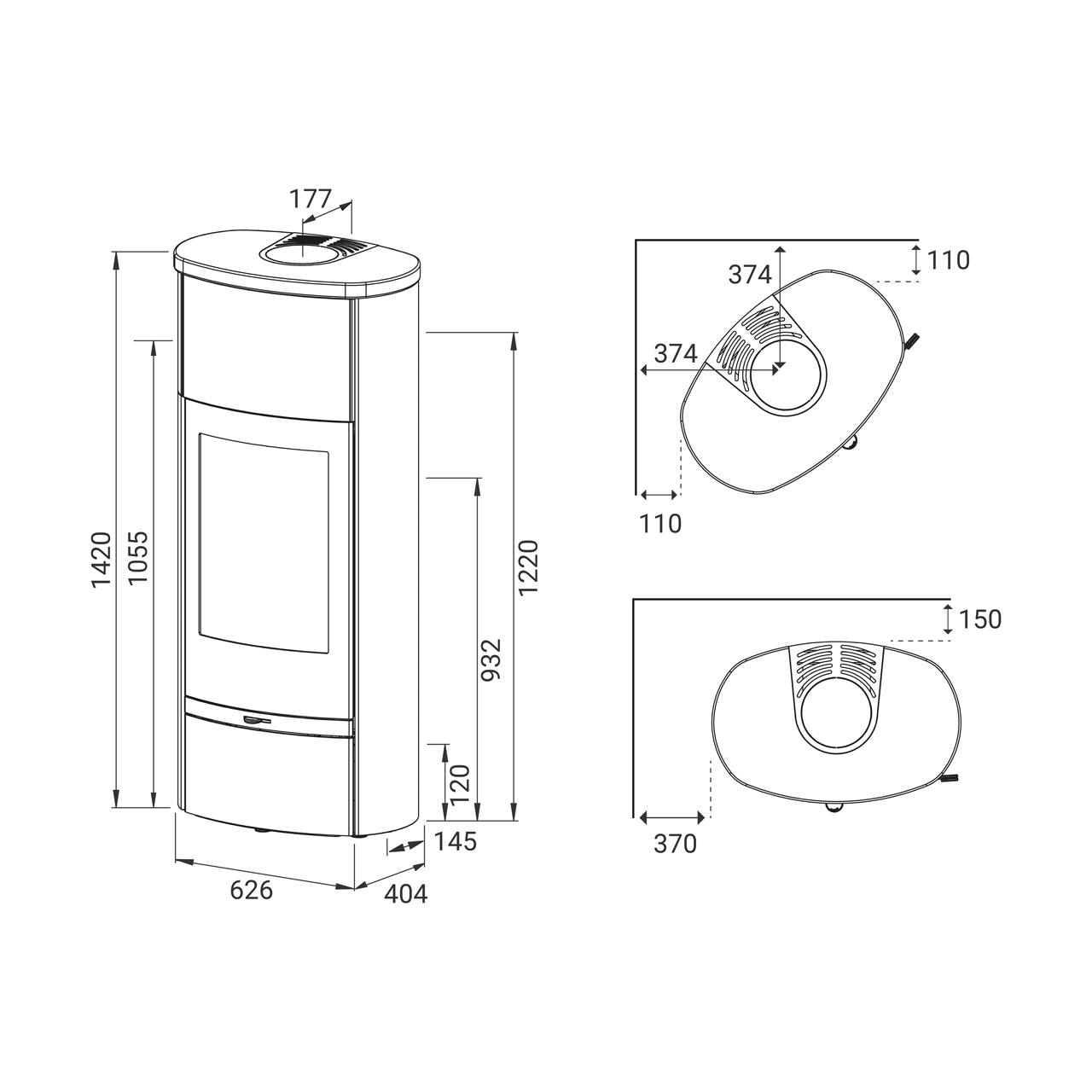 | Anschlusshöhe für Abgang hinten bis Mitte Rauchrohr | H932/1222 mm |
