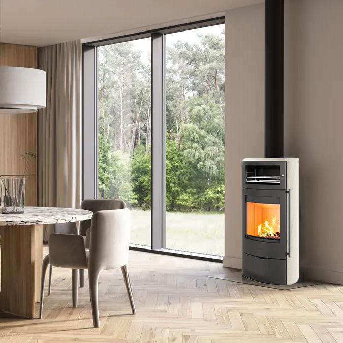 Kaminofen Lotus Jubilee 35 Limestone mit Warmhaltefach 7,1 kW: Wärme mit Stil für ein Zuhause zum Wohlfühlen