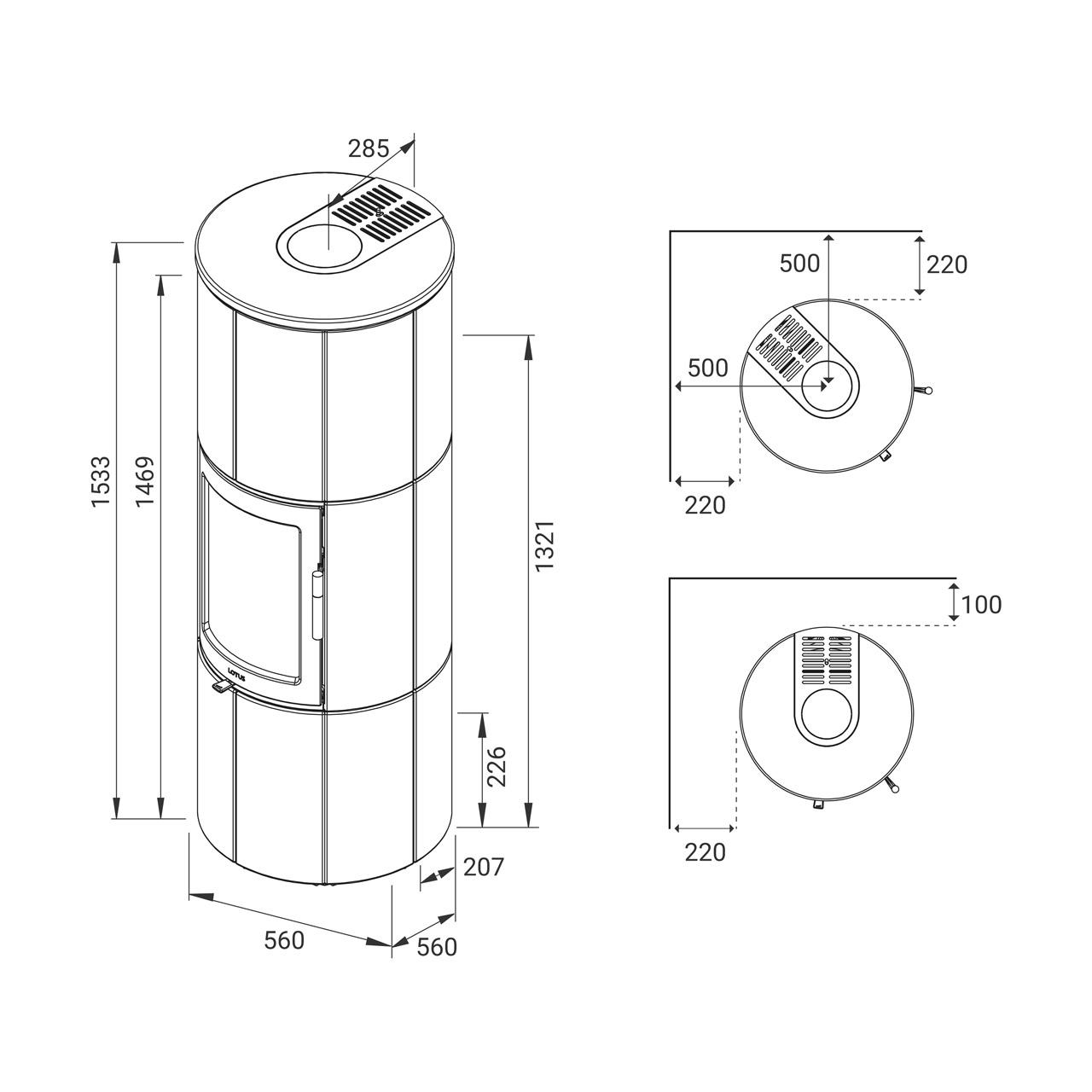 | Anschlusshöhe für Abgang hinten bis Mitte Rauchrohr | H1321 mm (optionaler Steinsatz notwendig) | |