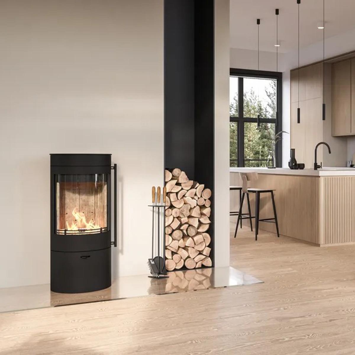 - Integrierte Holzfachtür - Praktischer Stauraum für Brennmaterial und Zubehör