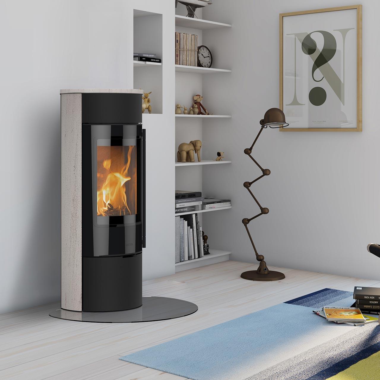 - eleganter runder Kaminofen mit abgeflachter Rückseite