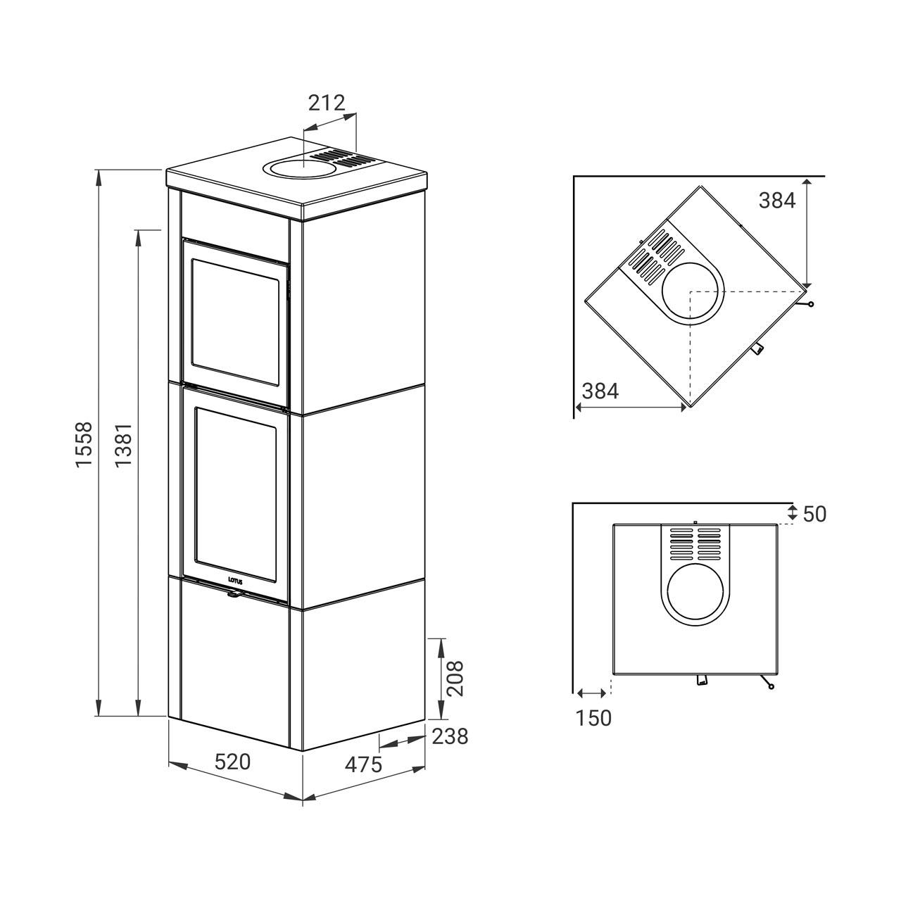 | Abmessungen | H1558/B520/T475 mm |