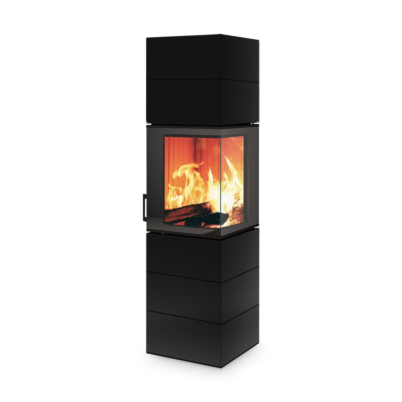 Die Neocube Black & White Kaminofenserie zeichnet sich durch eine modulare Bauweise aus, die eine einfache Montage ermöglicht und aus nur wenige aufeinander abgestimmte Elemente besteht. Die Verkleidung ist dabei aus an den Kanten verklebten Teilen aus Keramik gefertigt. Ein intelligentes Einstellsystem erlaubt das unkomplizierte Verschieben und Ausrichten aller Keramik-Bestandteile. Selbst bei einer zu schützenden Wand ist es möglich, den Kaminofen wandbündig zu montieren.