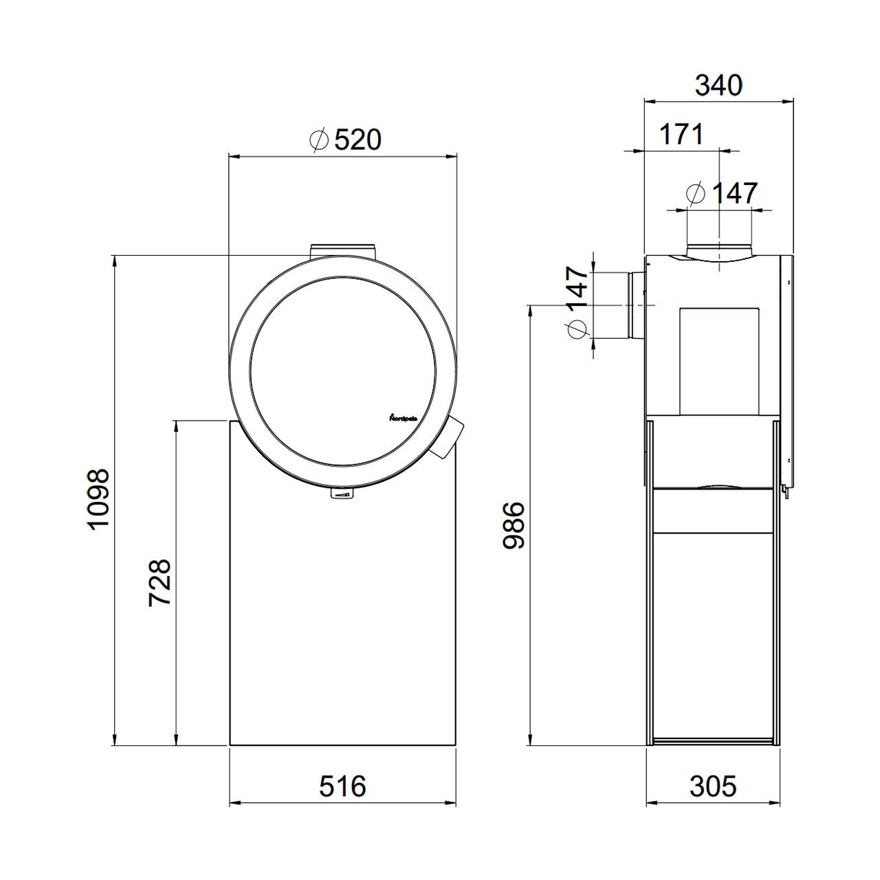 Technische Daten Kaminofen Nordpeis ME Glas: