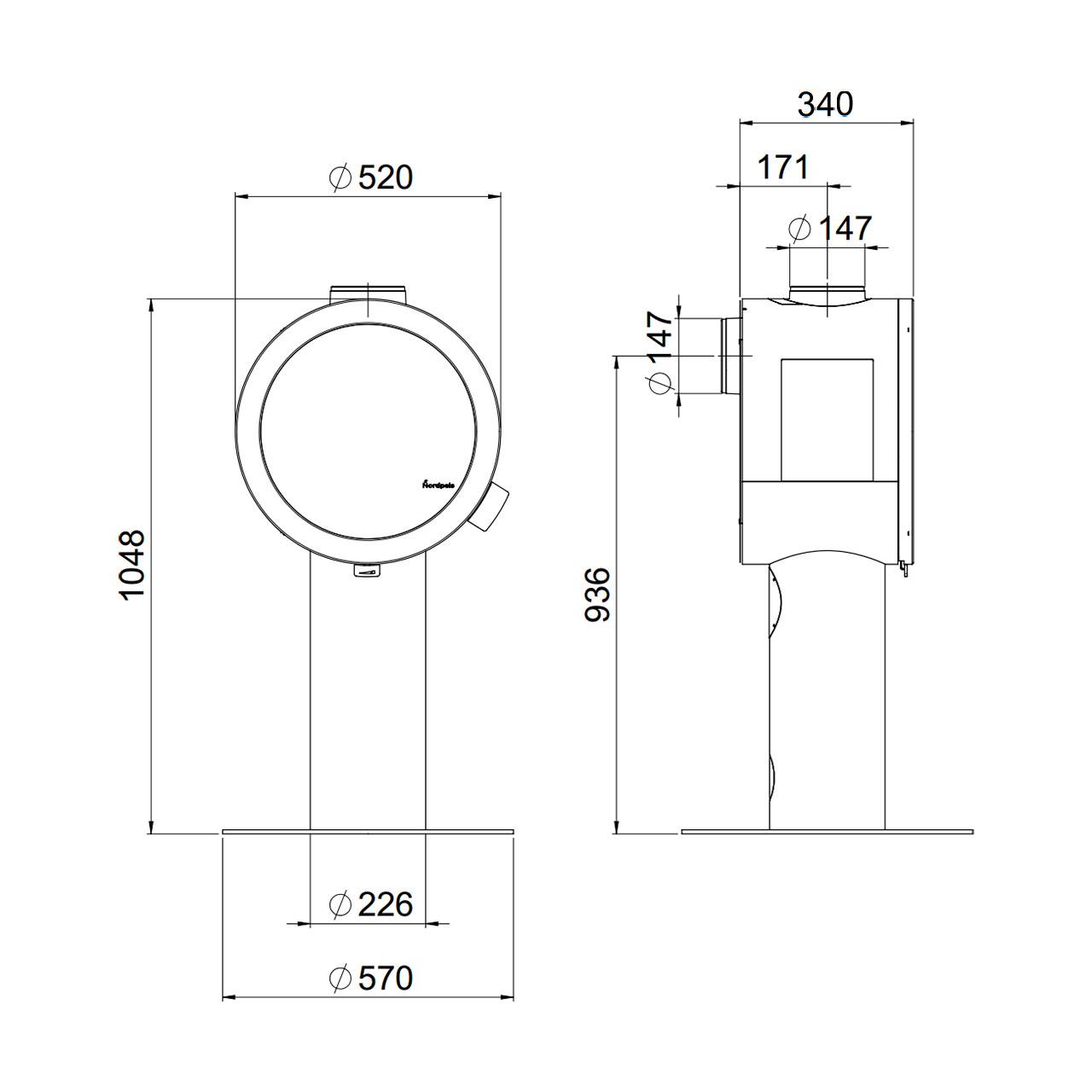 Technische Daten Kaminofen Nordpeis ME Sockel: