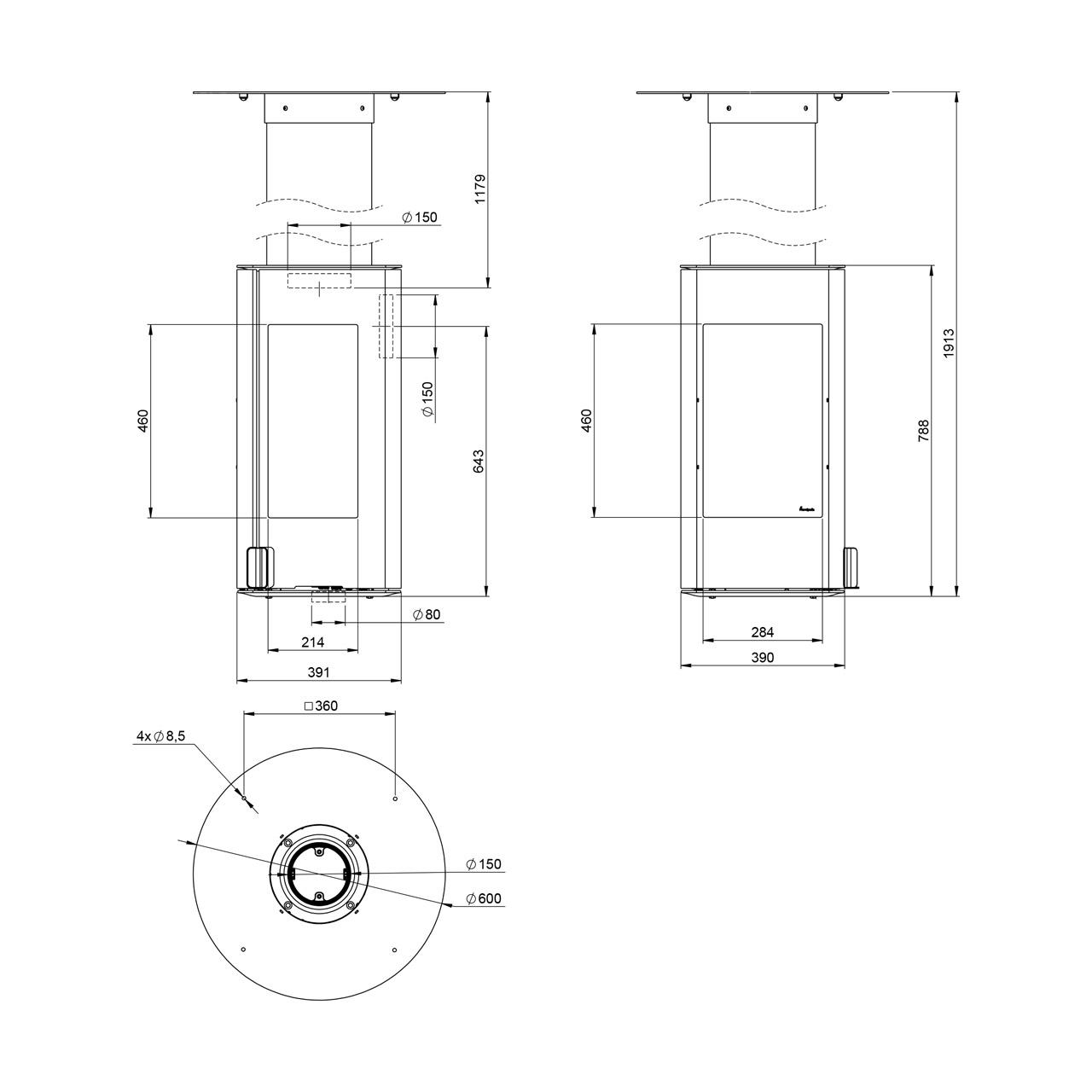 - Feuerstätte für die Deckenmontage mit belüfteter Aufhängung