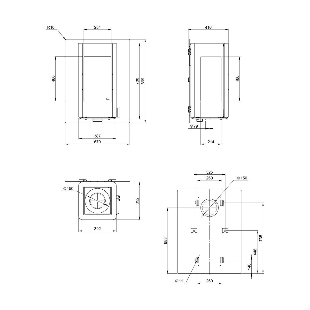 | Abmessungen | H788/B392/T392 mm (Ohne Hitzeschutz) H869/B670/T416 mm (Inkl. Hitzeschutz) |