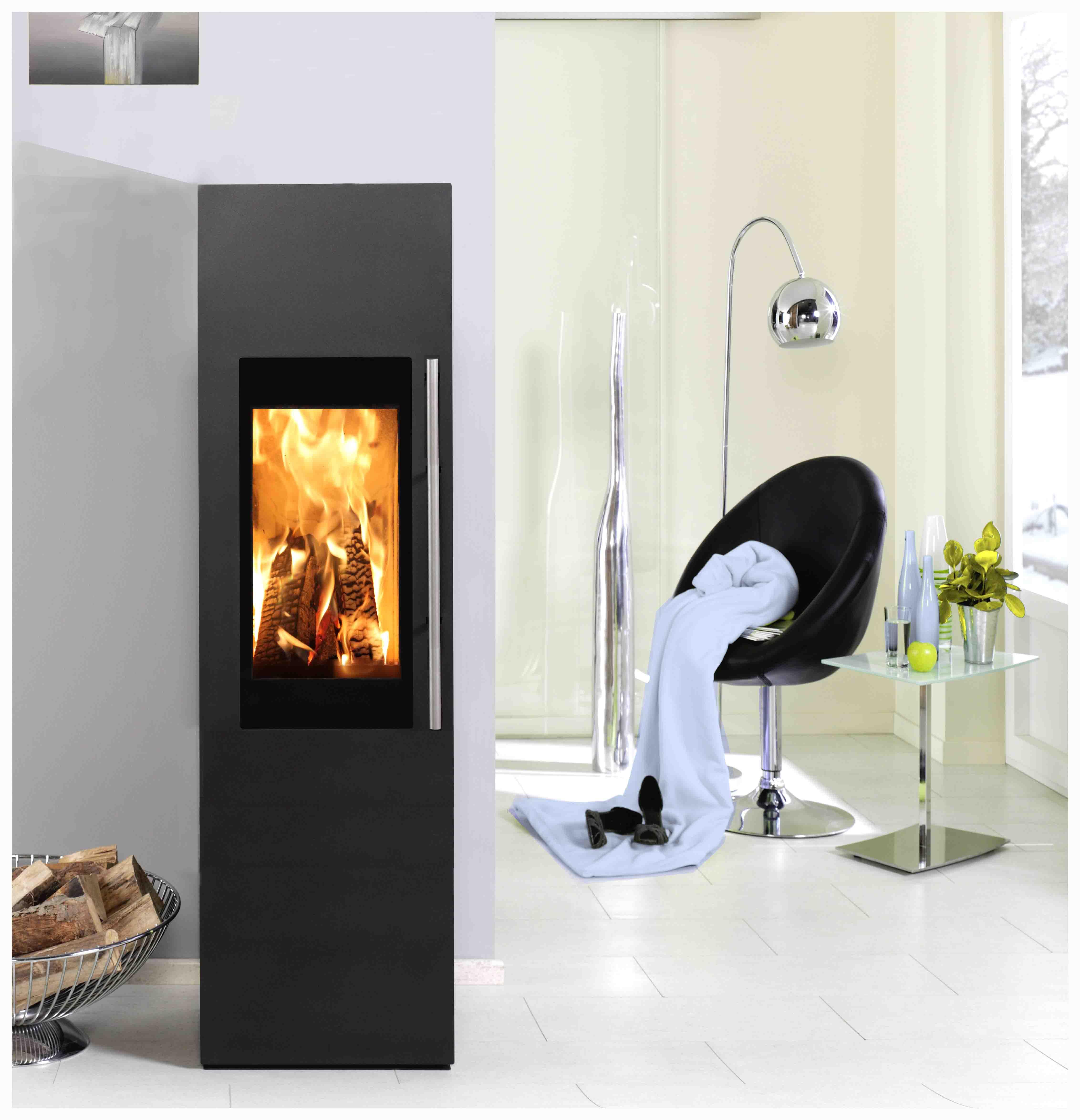 - Zeitbrandfeuerstätte mit klare Linien, zeitlosem Design und hohem schlanken Korpus