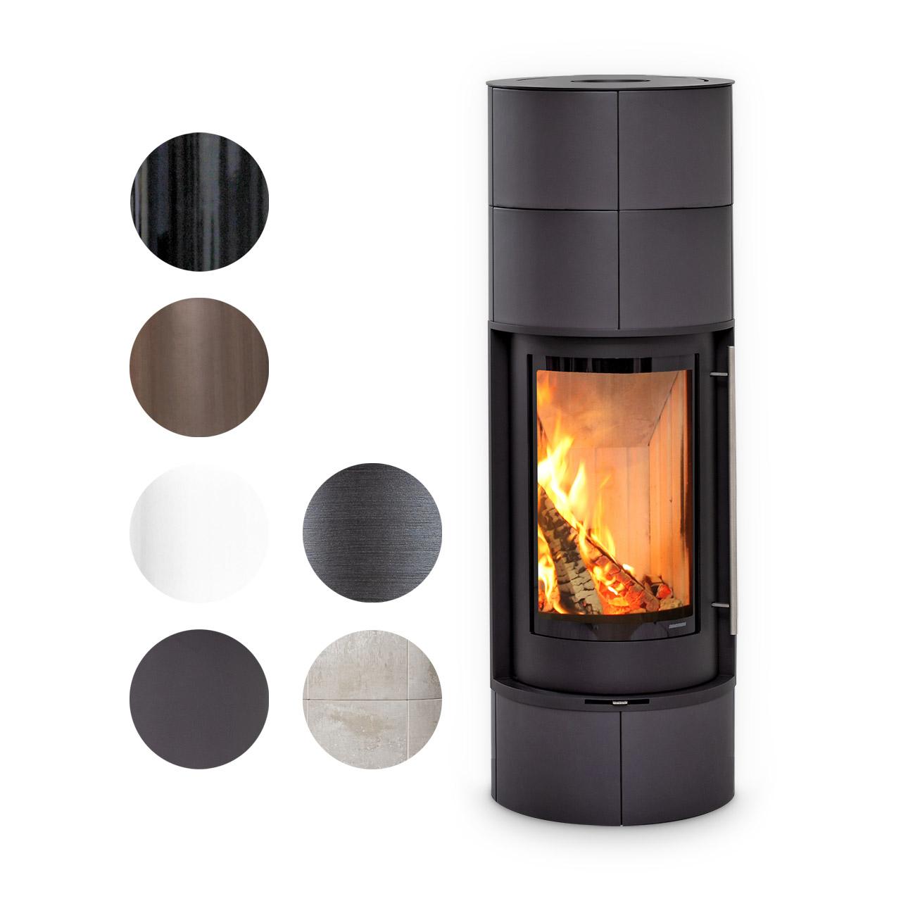 Der Kaminofen Skanderborg Pila kann hinsichtlich seiner Verkleidung individuell angepasst werden. Zur Auswahl stehen verschiedene Ofenkacheln, welche in Farbe und Oberfläche unterschiedlich sind. So können Sie den Holzofen genau an Ihr Wohnambiente und den persönlichen Geschmack anpassen. Die Ofenkacheln besitzen zudem einen hohen Anteil an Schamotte und damit eine hohe Speicherfähigkeit. Dieser Effekt durch den Einsatz der ca. 75 kg schweren Speicherelemente weiter verstärkt werden. Sie werden oberhalb der Brennkammer installiert und nehmen ein Teil der erzeugten Wärme auf und machen den Kaminofen zu einem Speicherofen. An der Vorderseite befindet sich bei dem Schwedenofen der einfach zu bedienende 1-Hand-Luftschieber, mit welchem Sie die Verbrennungsluft bequem regulieren können.