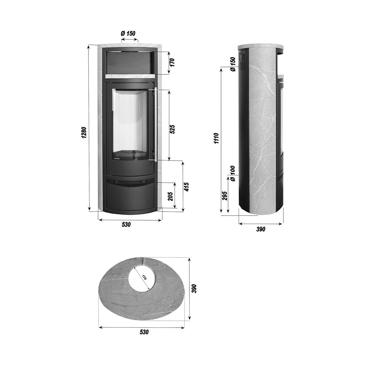 | Abmessungen, Brennkammer | H500/B300/T290 mm | |