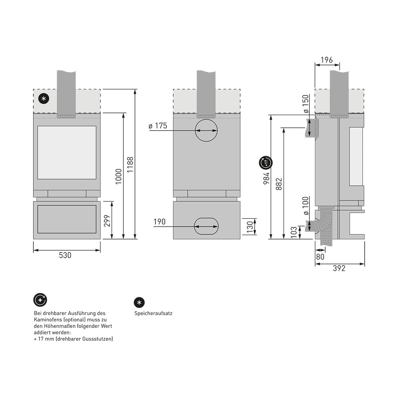 Skantherm gibt Ihnen die Möglichkeit Ihren eigenen Kaminofen Skantherm Emotion S zu individualisieren. Daher können Sie natürlich einige zusätzliche Entscheidungen treffen. Erhältlich ist zum Beispiel ein zusätzlichen Speicheraufsatz mit 6 Thermottesteinen, wodurch Sie von einer langanhaltenden Strahlungswärme profitieren, auch noch nach Löschen des Feuers. Mit dem Speicheraufsatz erhöhen Sie Ihren Emotion S zudem auf insgesamt 1188 mm.