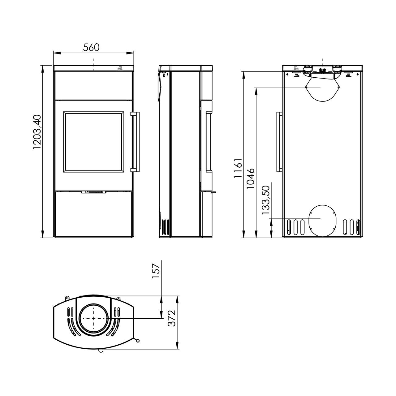 Die TT80-Serie überzeugt durch ihr robustes und elegantes Design. Trotz der breiten Brennkammer von 42 cm ist der Ofen nur 37 cm tief und passt perfekt in moderne Wohnräume. Tür und Topplatte aus Gusseisen sorgen für Langlebigkeit. Schwarz lackiert, integriert er sich harmonisch in verschiedene Einrichtungsstile.