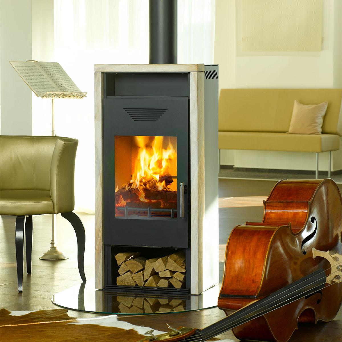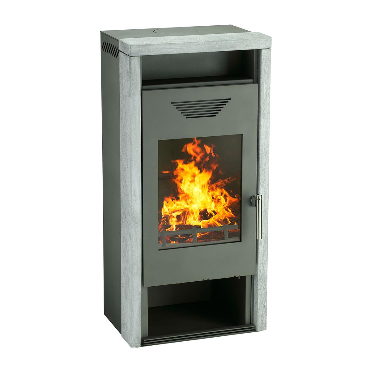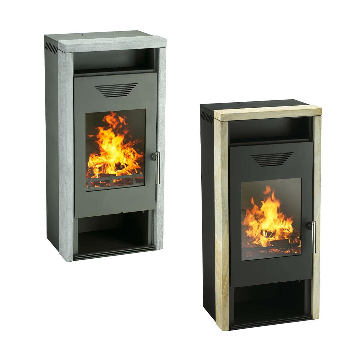 Ob Sie lieber den grauen Korpus mit Speckstein oder die schwarze Variante mit Sandstein wählen: Der Kaminofen Wamsler Yara 8 kW passt zu Ihrem Stil. Mit seinen