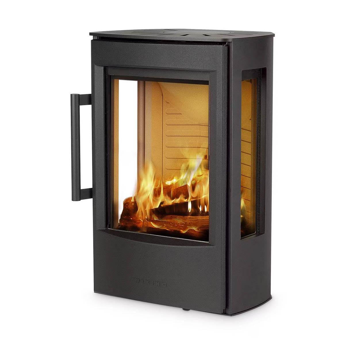 Kaminofen Wiking Miro 1 DIBt-geprüft: die wandhängende Feuerstätte mit dreiseitiger Verglasung