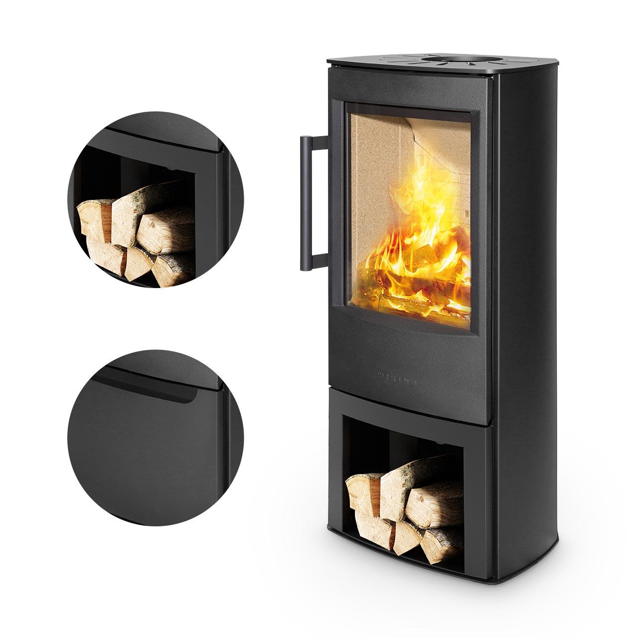 Kaminofen Wiking Miro 4: Robuste Feuerstätte mit großem Lagerfach