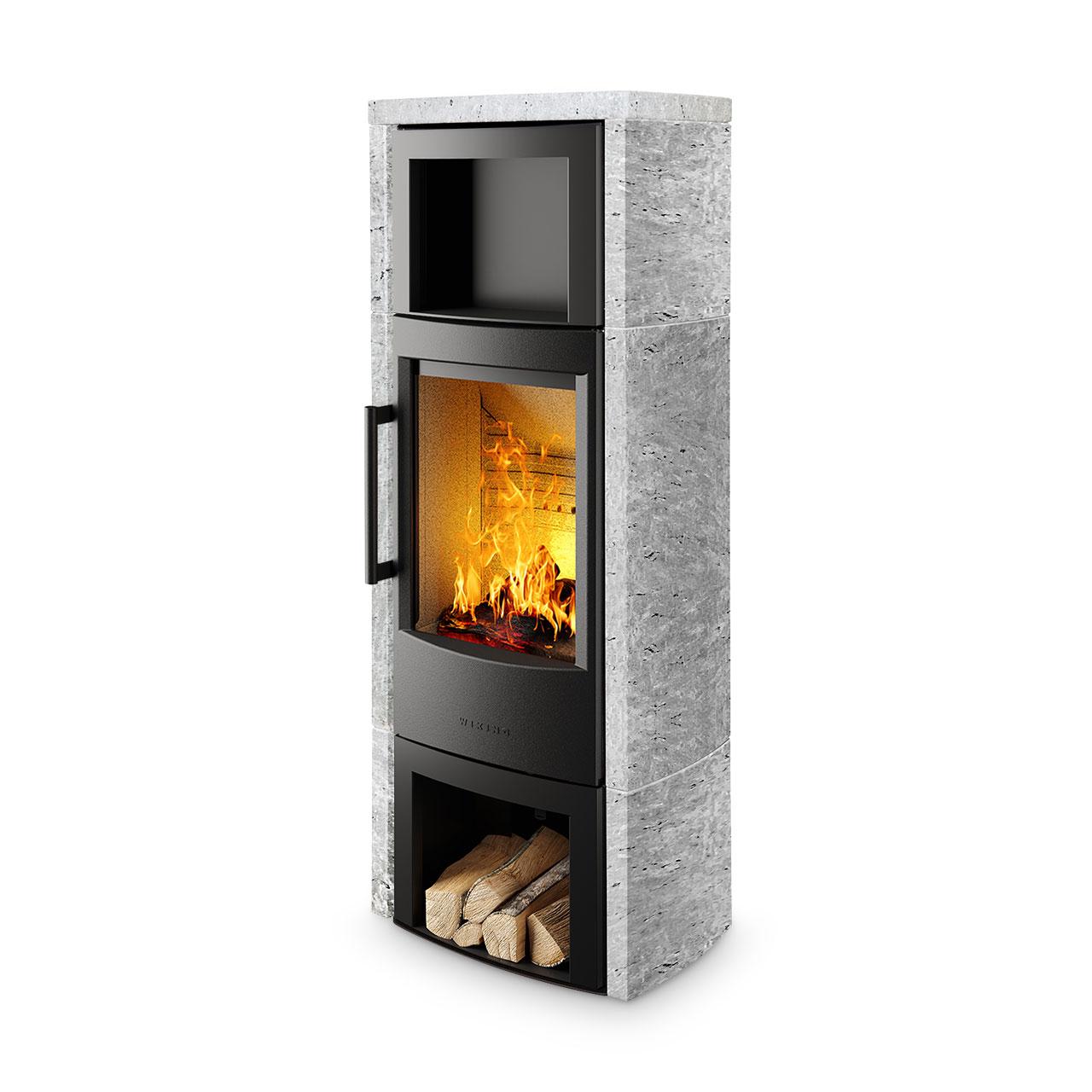 Kaminofen Wiking Miro 6 Speckstein: schlanke Feuerstätte mit Natursteinverkleidung