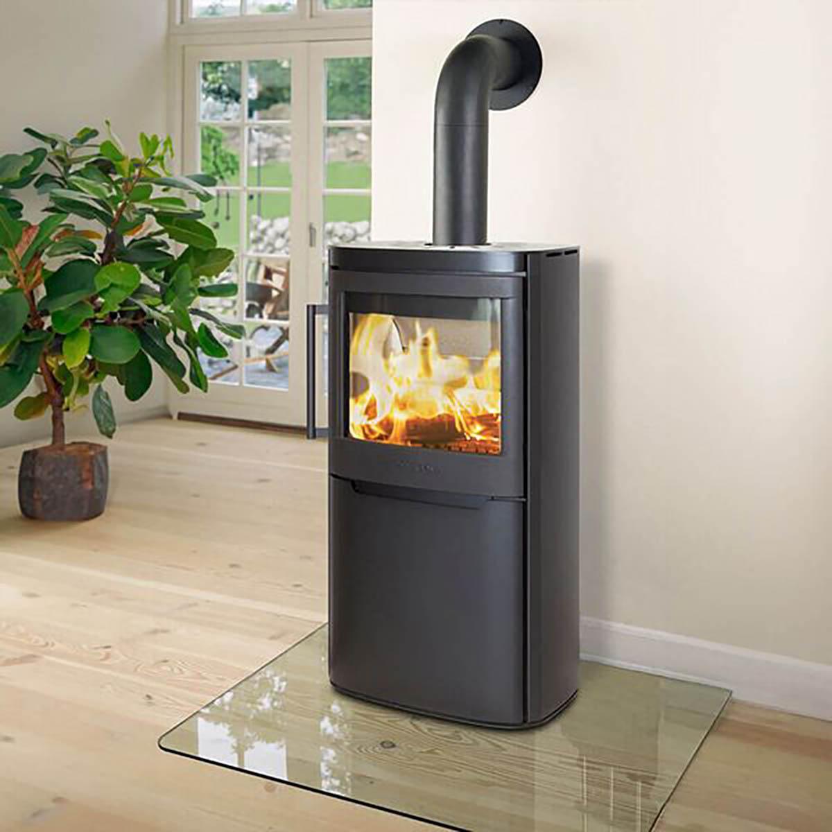 Feuer und Gemütlichkeit gehen Hand in Hand, aber damit das Flammenspiel den Wohnraum in ein schönes Ambiente tauchen kann, muss es auch richtig in Szene gesetzt werden! Wie das geht, zeigt der Kaminofen Wiking Pala 6, denn diese breite und robuste Feuerstätte besitzt eine besonders große Brennkammer, die mit einer Panorama-Sichtverglasung ausgestattet ist. So hat das Feuer genügend Platz, um sich zur vollen Pracht zu entfalten. Der Kaminofen Wiking Pala 6 begeistert zudem mit einer kompakten Bauweise von 63,0 x 40,6 x 98,8cm (L x B x H) und braucht damit nur wenig Stellplatz im Wohnraum.