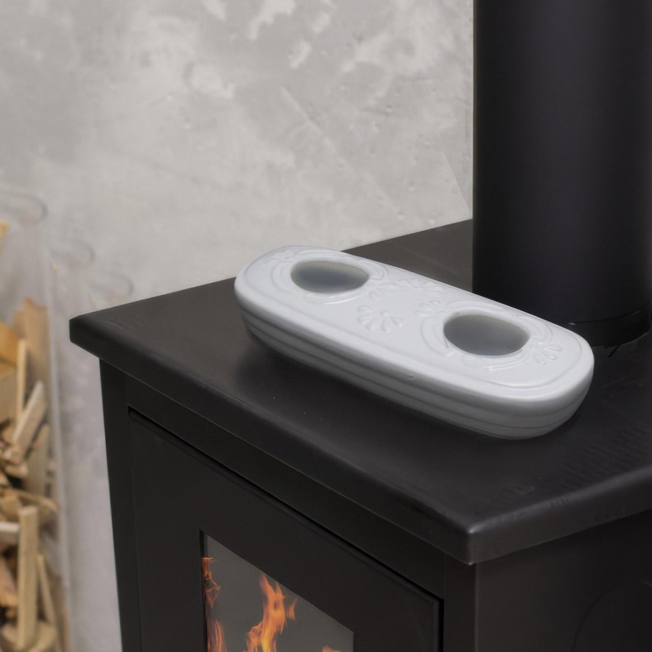 Kaminöfen, aber auch Heizkörpern, Fensterbänken oder anderen flachen Oberflächen platziert werden und ist dabei umweltfreundlich. Der Keramik-Aufstellverdunster Piccolo